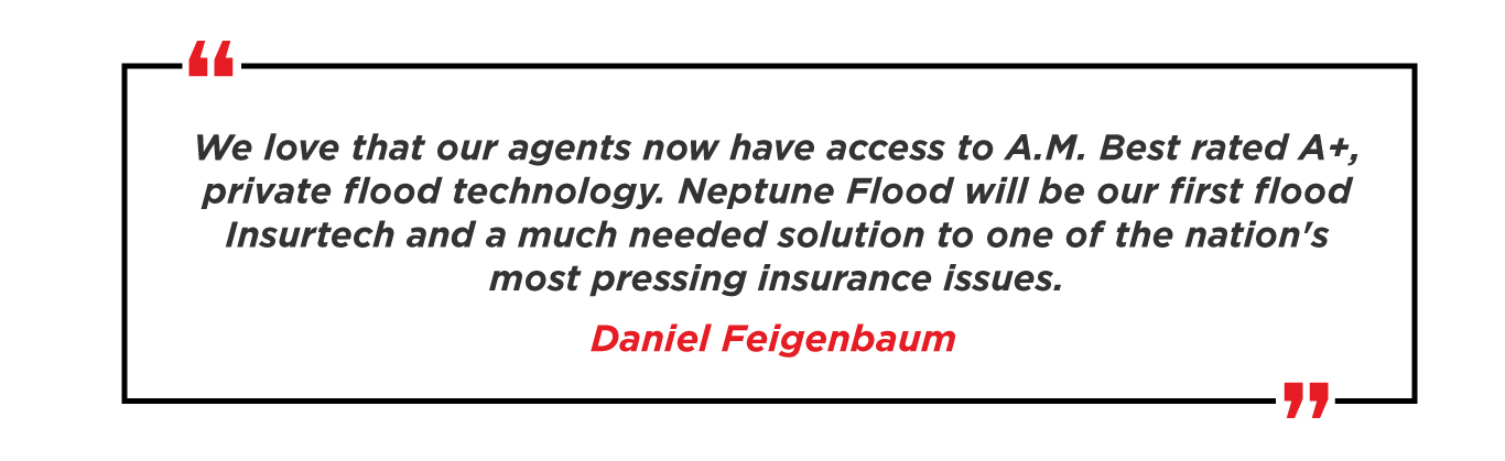 Neptune’s revolutionary technology leverages advanced analytics to change the way America buys flood insurance. In less than 3 minutes, without an elevation certificate or any trailing documents, agents can quote and bind a policy.